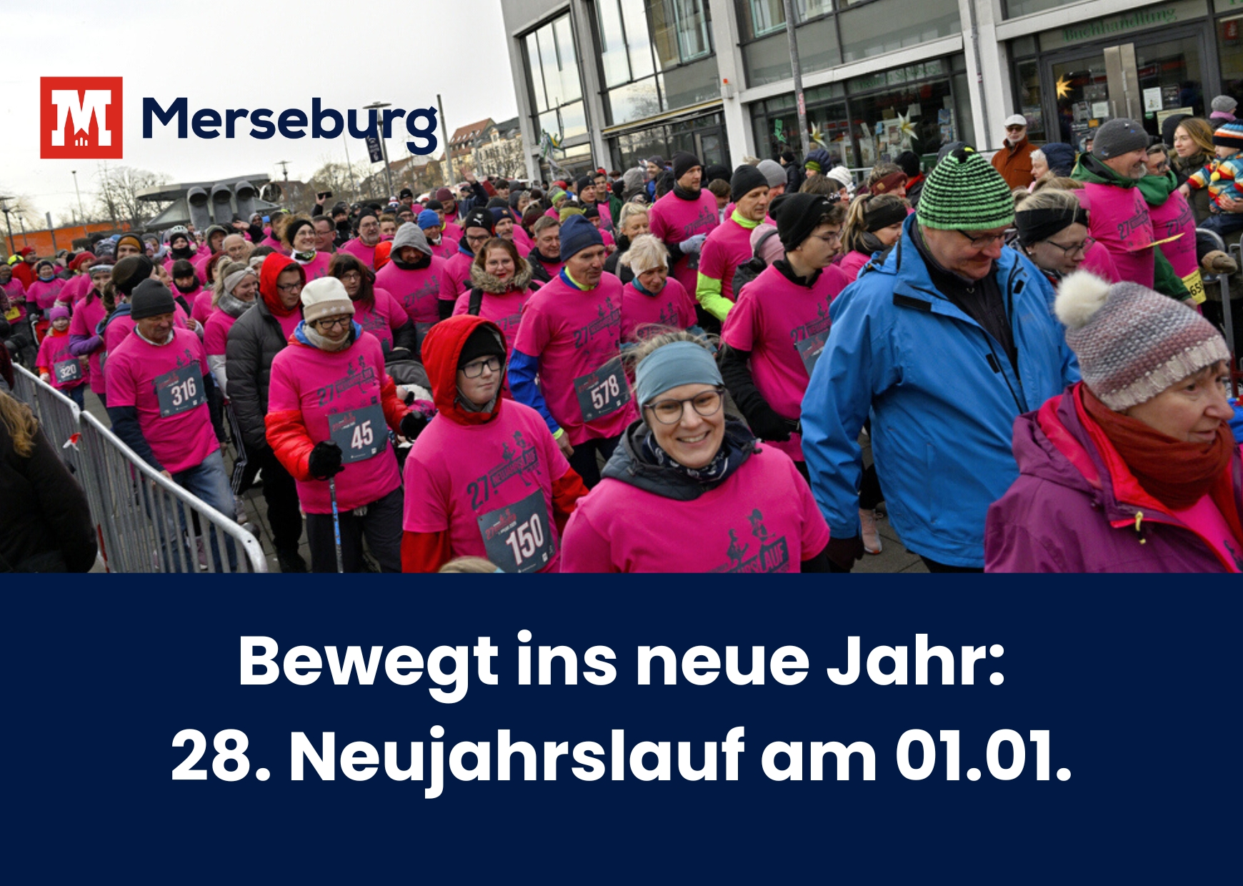 Der seit 1997 stattfindende Merseburger Neujahrslauf ist mittlerweile fester Bestandteil sowohl bei den Freizeitsportlern als auch leistungsorientierten Läufern. Neben den Saalekreislern nutzen jedes Jahr auch Laufbegeisterte aus vielen Teilen Deutschlands den Lauf, um sportlich ins Jahr einzusteigen. Pünktlich um 11 Uhr werden die Läuferinnen und Läufer traditionell mit dem Startschuss der Schützengilde Merseburg 1534 auf die Reise geschickt. Start und Ziel sind, wie auch in den vergangenen Jahren, die Kliaplatte. Die Läuferinnen und Läufer können zwischen zwei Streckenlängen wählen. Die Kurzdistanz über 1,7 Kilometer und eine Langstrecke über 5,1 Kilometer führen durch die Merseburger Innenstadt. Laufend, walkend, Kinderwagen schiebend oder Hund tragend - beim 28. Merseburger Neujahrslauf geht alles, Hauptsache man kommt ins Ziel. Wie in den vergangenen Jahren werden auch beim nächsten Neujahrslauf über 600 Läuferinnen und Läufer erwartet.