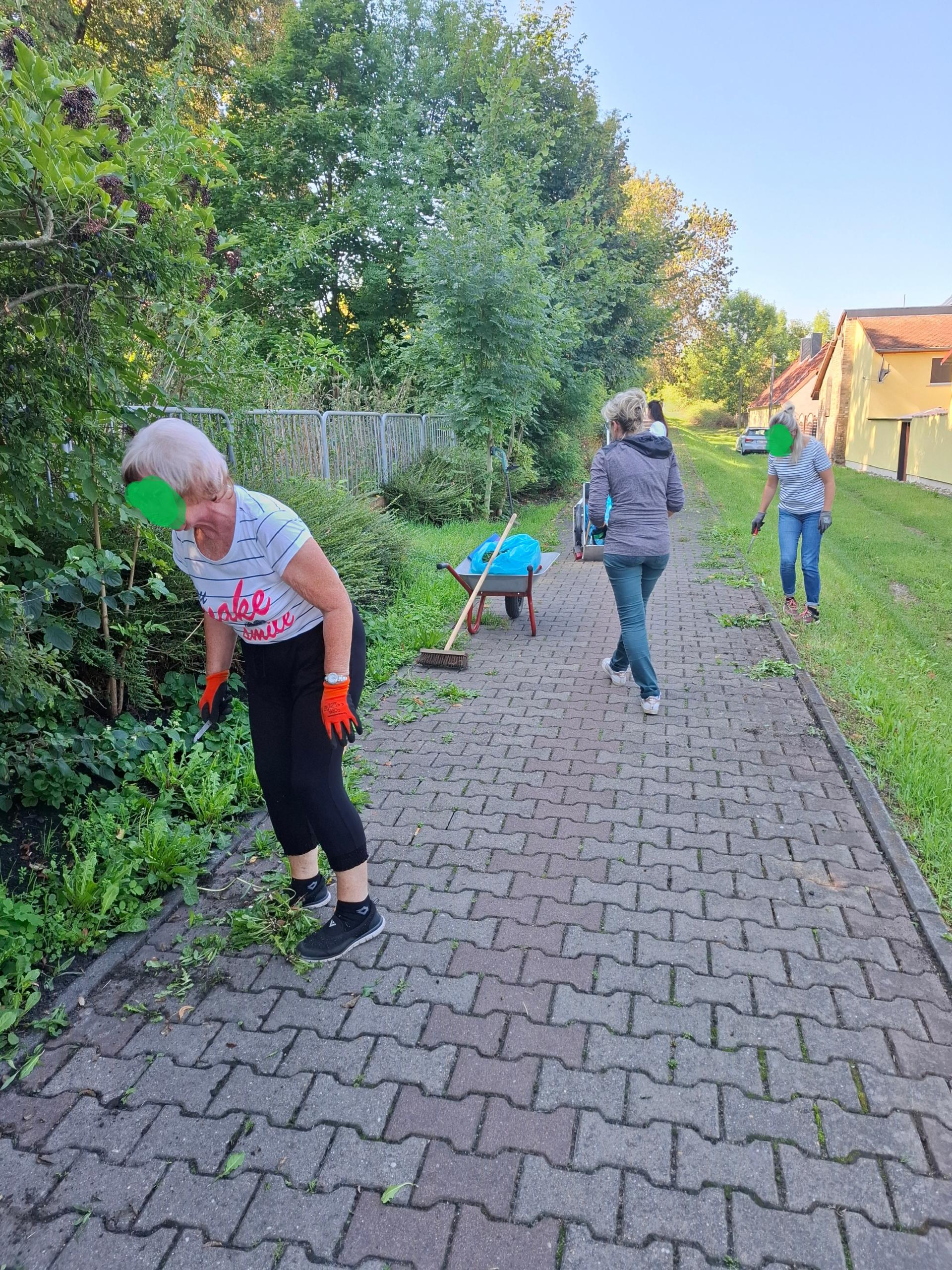 Die Trebnitzer legten noch eine Schippe drauf: Das Wort "Aktionstag" nahmen sie wohl wörtlich, denn hier startete man ebenfalls bereits um 09:00 Uhr - die "Grundreinigung" dauerte aber bis 17:00 Uhr. 15 Trebnitzer im Alter von 8 bis 85 Jahren gingen noch weiter, als "nur" Müll zu sammeln. Es wurden der Container sowie die Tische und Bänke der Schutzhütte gestrichen, der Spielplatz gereinigt, Büsche verschnitten und Gehwege und Straßen von Unkraut befreit. Das anschließende Beisammensein mit Verpflegung hatten sie sich redlich verdient.